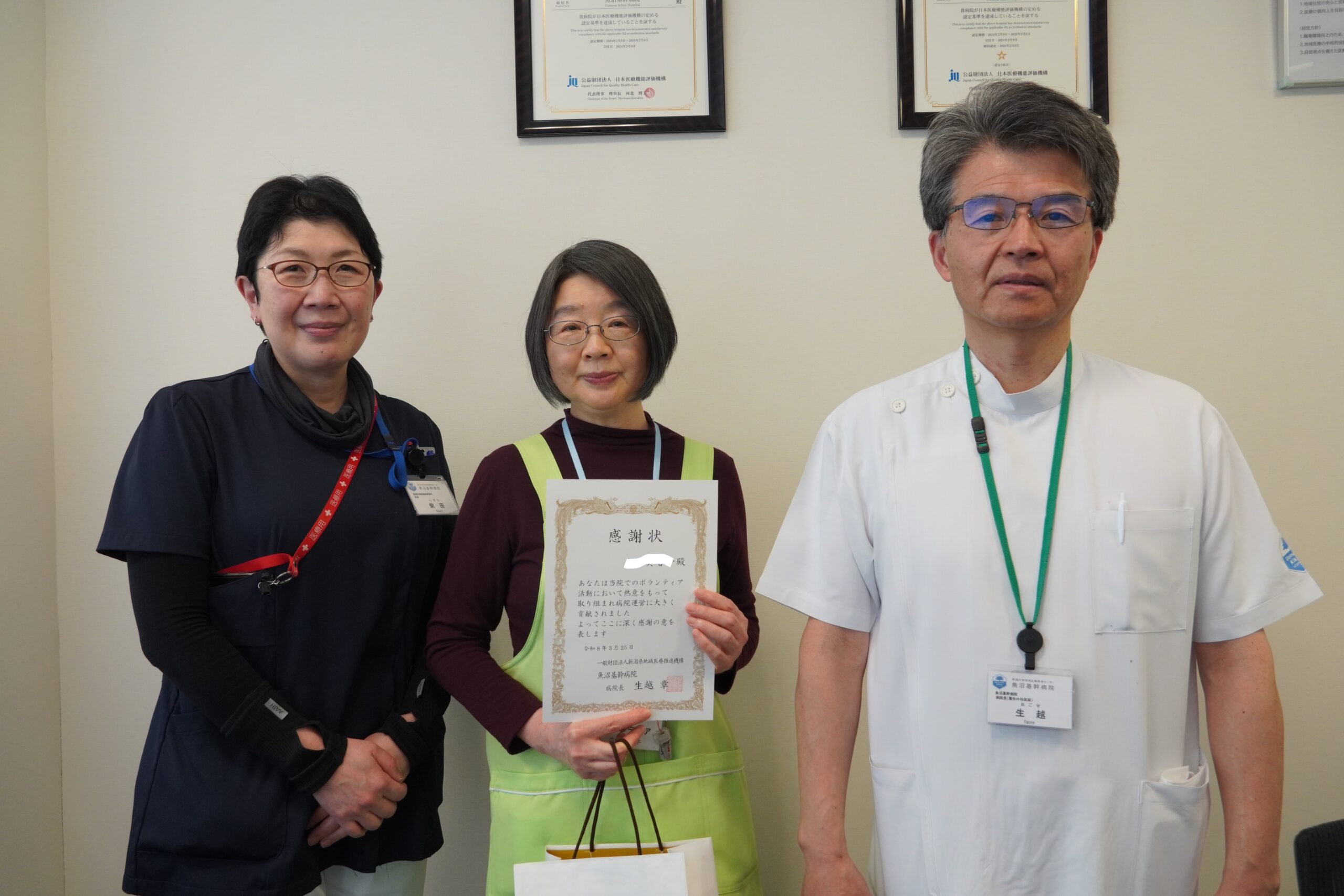 院内ボランティアさんに感謝状を贈呈しました