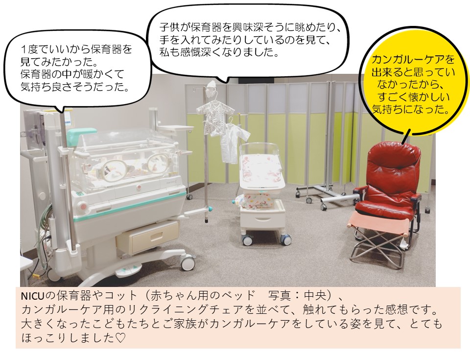 - 子供が保育器を興味深そうに眺めたり手を入れてみたりしているのを見て、私も感慨深くなりました。参加できてよかったです!