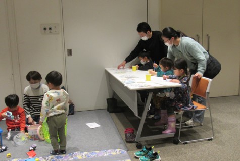 キッズスペースにはスタッフの手づくりのおもちゃや、塗り絵、小児科外来でおなじみのおもちゃなどをたくさん用意しました。