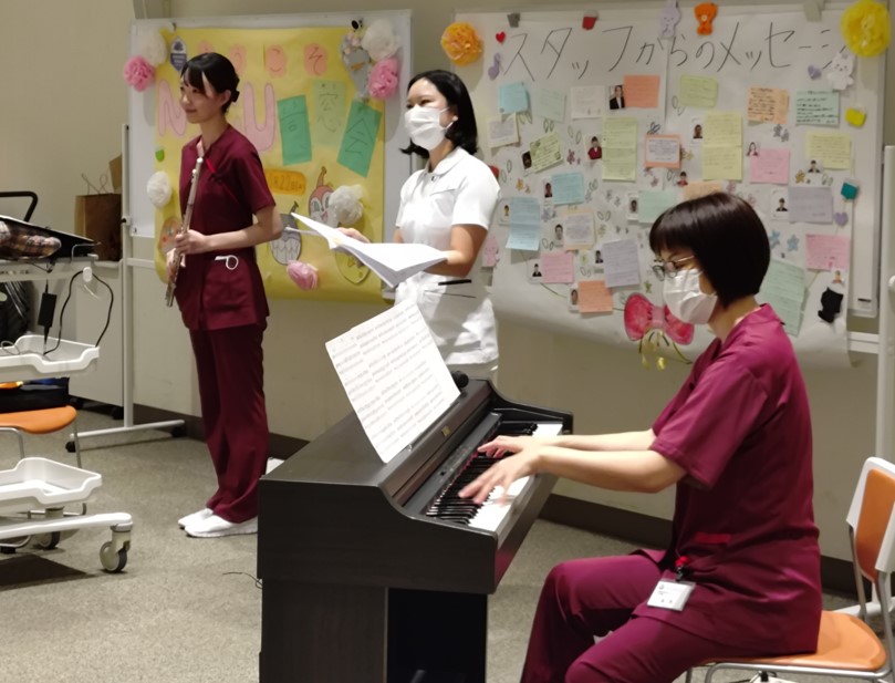久しぶりに集まった皆さん…特にこどもたちは病院に来て緊張しているのではないかな?と思い、初めに音楽でお出迎えしました♪